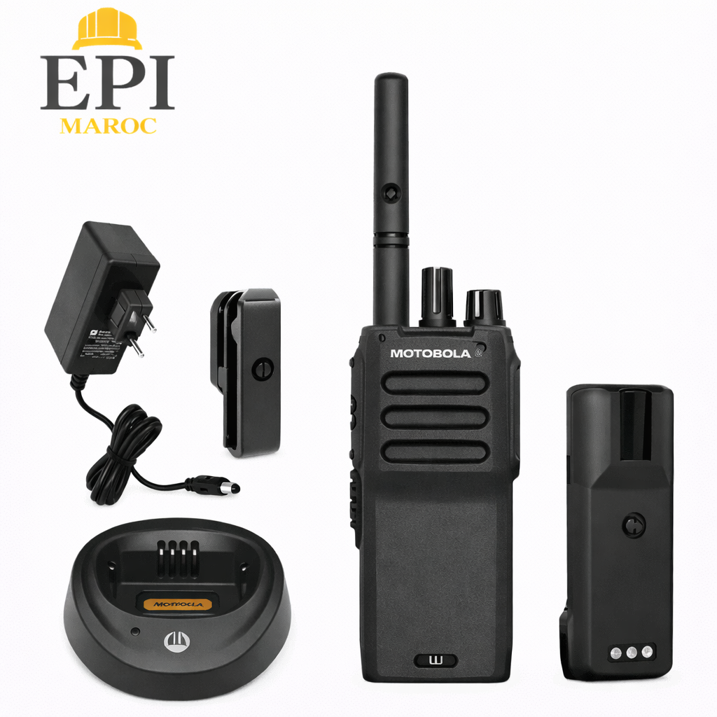 EPI Maroc, votre fournisseur de Talkie-Walkie Motorola R2 professionnel au Maroc, vous propose un équipement de communication performant et robuste, spécialement conçu pour les environnements professionnels exigeants. Idéal pour les chantiers, la sécurité, l’industrie et la logistique, le Motorola R2 offre une qualité audio claire et puissante, même dans les environnements bruyants. Sa conception solide et résistante assure une excellente durabilité face aux chocs et aux conditions difficiles. Il dispose d’une batterie longue durée garantissant une autonomie optimale pour une utilisation continue sur le terrain. Compact et ergonomique, il est facile à transporter et à utiliser au quotidien. Le Motorola R2 assure une communication fiable et sécurisée, essentielle pour la coordination des équipes. Chez EPI Maroc, nous garantissons un service après-vente fiable et une livraison gratuite à Casablanca avec expédition rapide partout au Maroc.