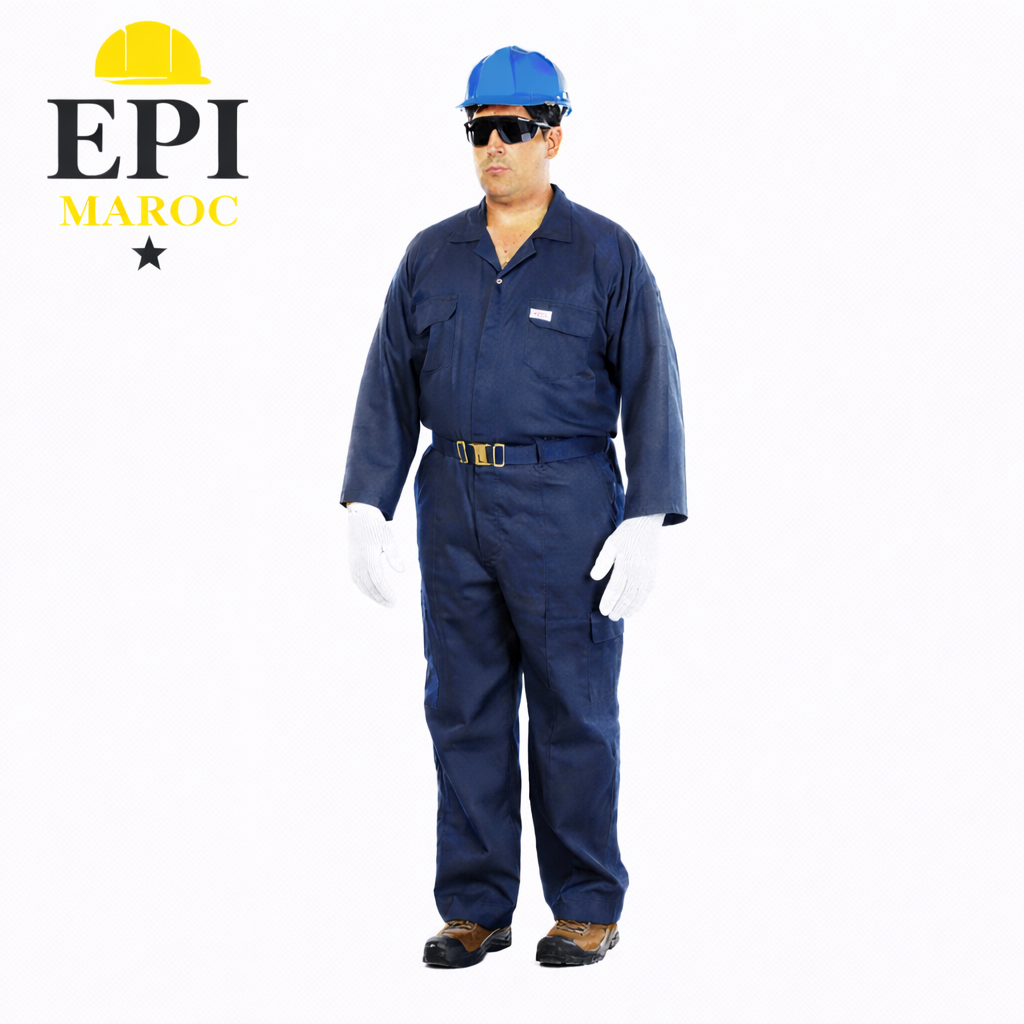 La combinaison bleu marine avec ceinture 1NV, proposée par EPI Maroc, votre fournisseur et distributeur d’équipements de protection individuelle au Maroc, est conçue pour répondre aux exigences des professionnels travaillant dans des environnements industriels et techniques.