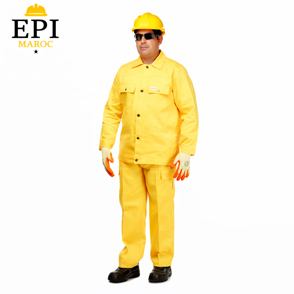 EPI Maroc votre fournisseur garantit un vêtement de travail alliant sécurité, confort et performance, idéal pour une utilisation quotidienne sur chantier ou en atelier. Sa couleur jaune haute visibilité améliore la sécurité dans les zones à risques et respecte les standards professionnels. Disponible au Maroc avec livraison rapide et service après-vente fiable.