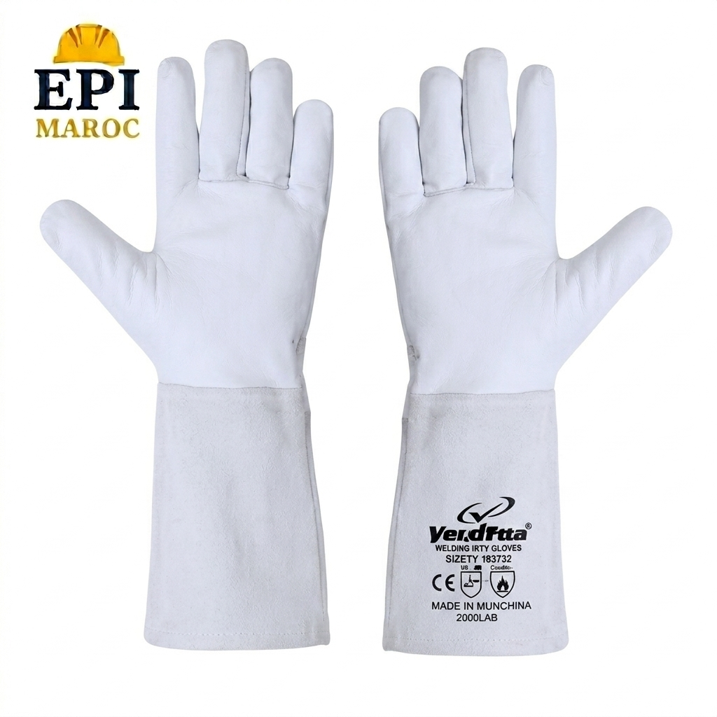 Disponible chez EPI Maroc, le gant de soudage HJO anti-chaleur EN407 EN388 est conçu pour protéger efficacement les mains lors des travaux de soudure.